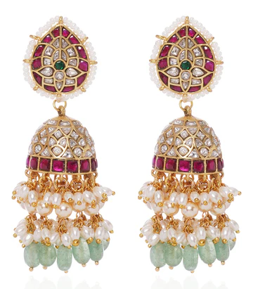 ANAYA RED & GREEN KUNDAN JHUMKA