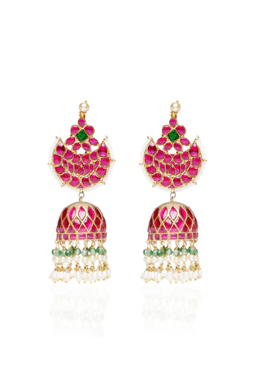 ISHEE RED & GREEN KUNDAN JHUMKA