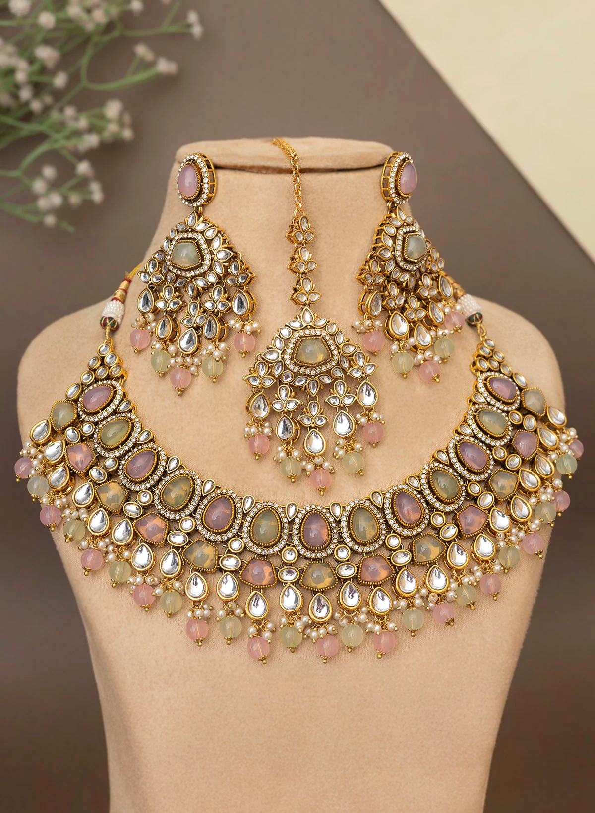 Occasion: Selecting the perfect wedding necklace set involves considering the neckline of your dress, your personal style, and how the pieces will complement your overall look .Add some beauty to your jewellery collection with these gold plated kundan stone necklace set .These necklace set will elevate your look on this wedding occasion, sangeet , marriage ,engagement, karwacahuth.