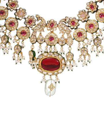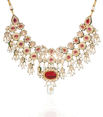 Grace Meets Grandeur In The Sumaya Red Kundan Necklace Set, Featuring Radiant Red Stones And Intricate Kundan Craftsmanship. Perfect For Weddings, Festivals, Or Special Occasions, This Set Adds A Regal Charm And Timeless Beauty To Any Ethnic Ensemble.