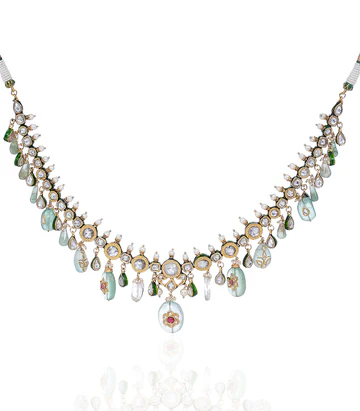 Elegance Meets Brilliance In The Aashima Necklace Set, Featuring Radiant Green Moissanite Stones Crafted With Precision. Perfect For Weddings, Receptions, Or Grand Celebrations, This Set Exudes Luxury, Sparkle, And Timeless Beauty.